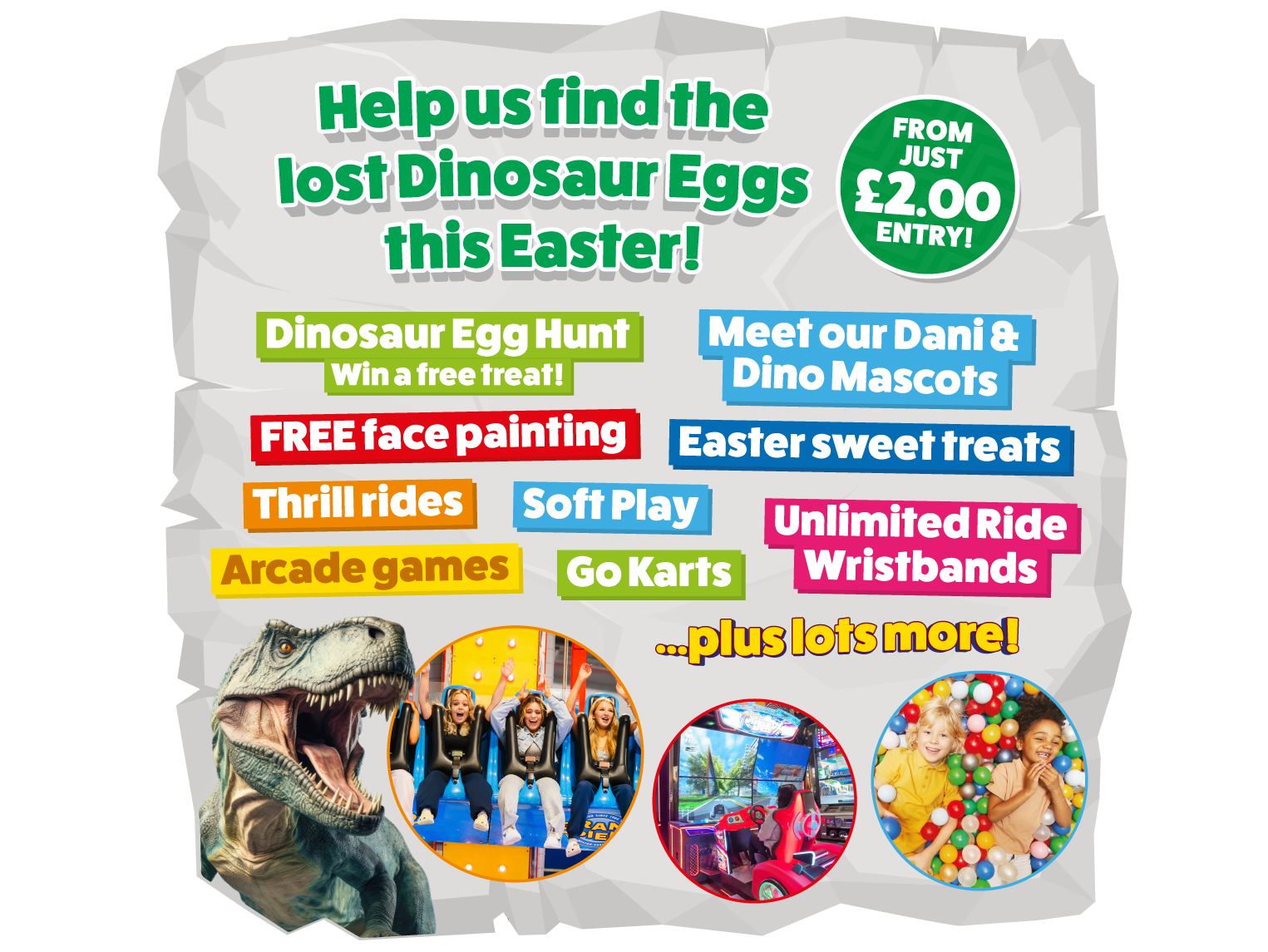 Once you have paid the £2 admission fee to The Grand Pier, you can play our Dinosaur Egg Hunt and enjoy Face Painting for free – there are also extra ticketed events also on during like Dinomania, see our events page for full listings!