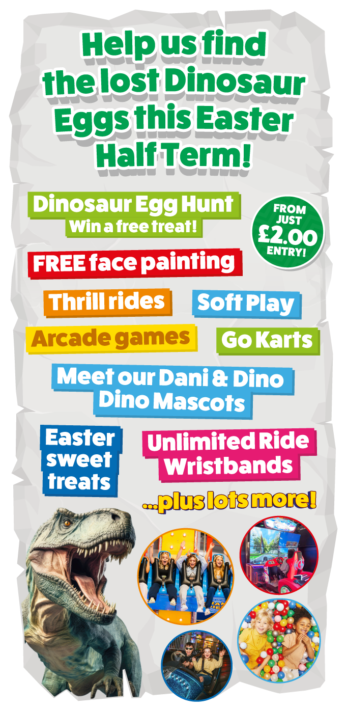 A staff member will hand you a Dinosaur Egg Hunt sheet so you can get exploring when you arrive! Try and find all of the Dinosaur eggs and present your finished sheet to the Prize & Gift Shop located on the 1st floor in exchange for a sweet treat!