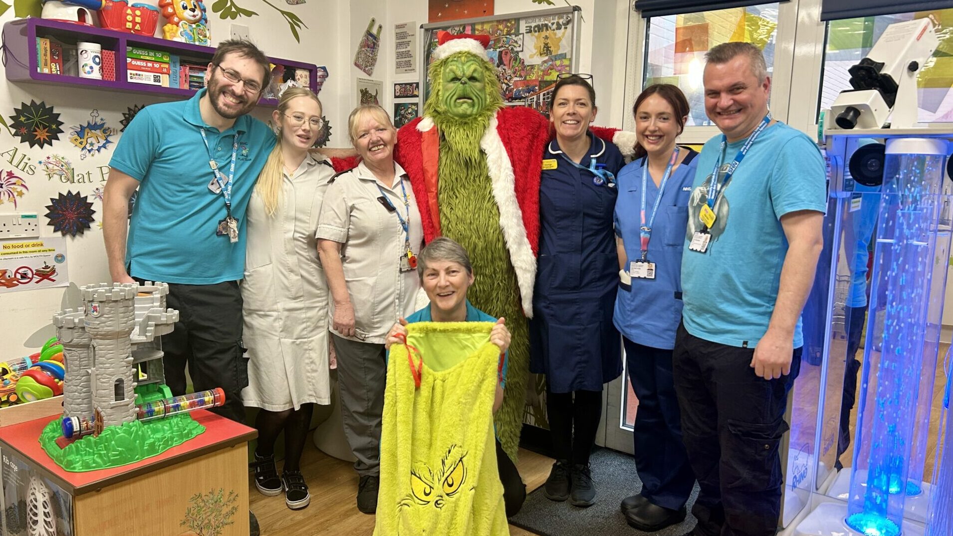 The mischievous Mr. Grinch stepped away from his festive duties at The Grand Pier to visit the hospital’s wards, spreading smiles, laughter, and a touch of playful chaos. Joined by Sparkles the Elf, the Grinch spent quality time with each child, creating joyful memories for the patients and their families.
