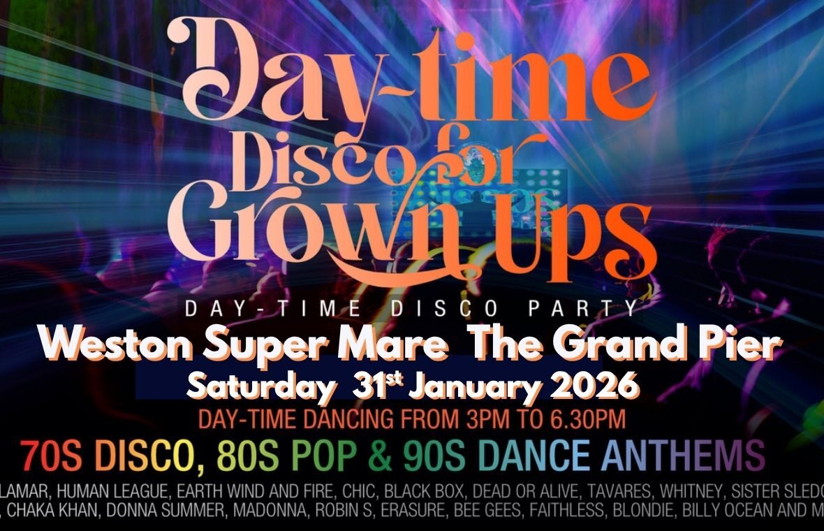 The legendary Discos for Grown ups party is coming to the Great Hall at the Grand Pier, Weston Super Mare for an incredible DAY-TIME disco on Saturday 31st January 2026